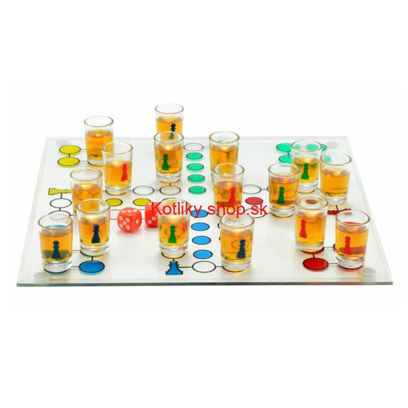 Veľkosť: 30 x 30 cm, hracia doska, sklenené poháre cca. 2 cl.