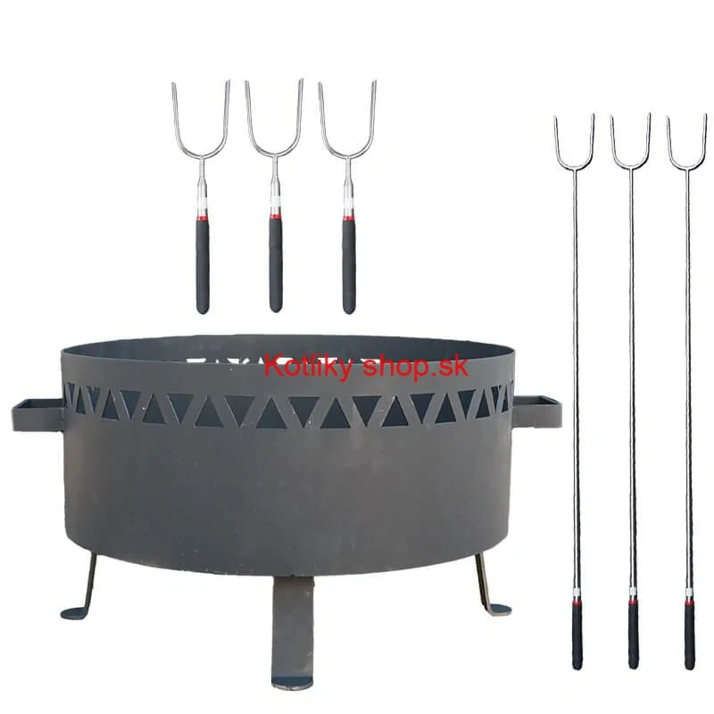 Prenosné ohnisko kov (1,5 mm) FIFO žiaruvzdorná farba PLUS 600 + Vidličky na opekanie teleskopické 6 ks