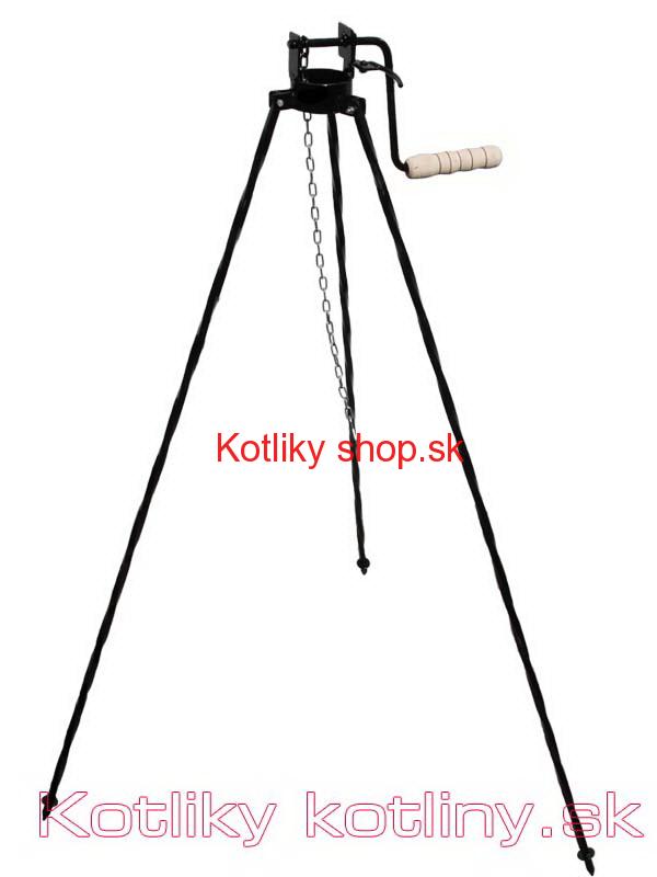 Špecialny stojan s poistnou kladkou na kotlík, alebo na grilovaciu panvicu.