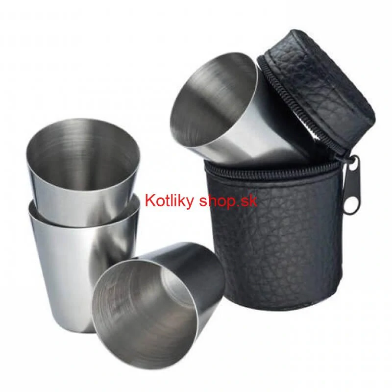 Praktická súprava 4 kovových pohárov v koženkovom puzdre so zipsom je ideálna na výlety, turistiku, kempovanie, rybačku či poľovačku. Poháre sa dajú zasunúť do seba, takže zaberú minimum miesta.